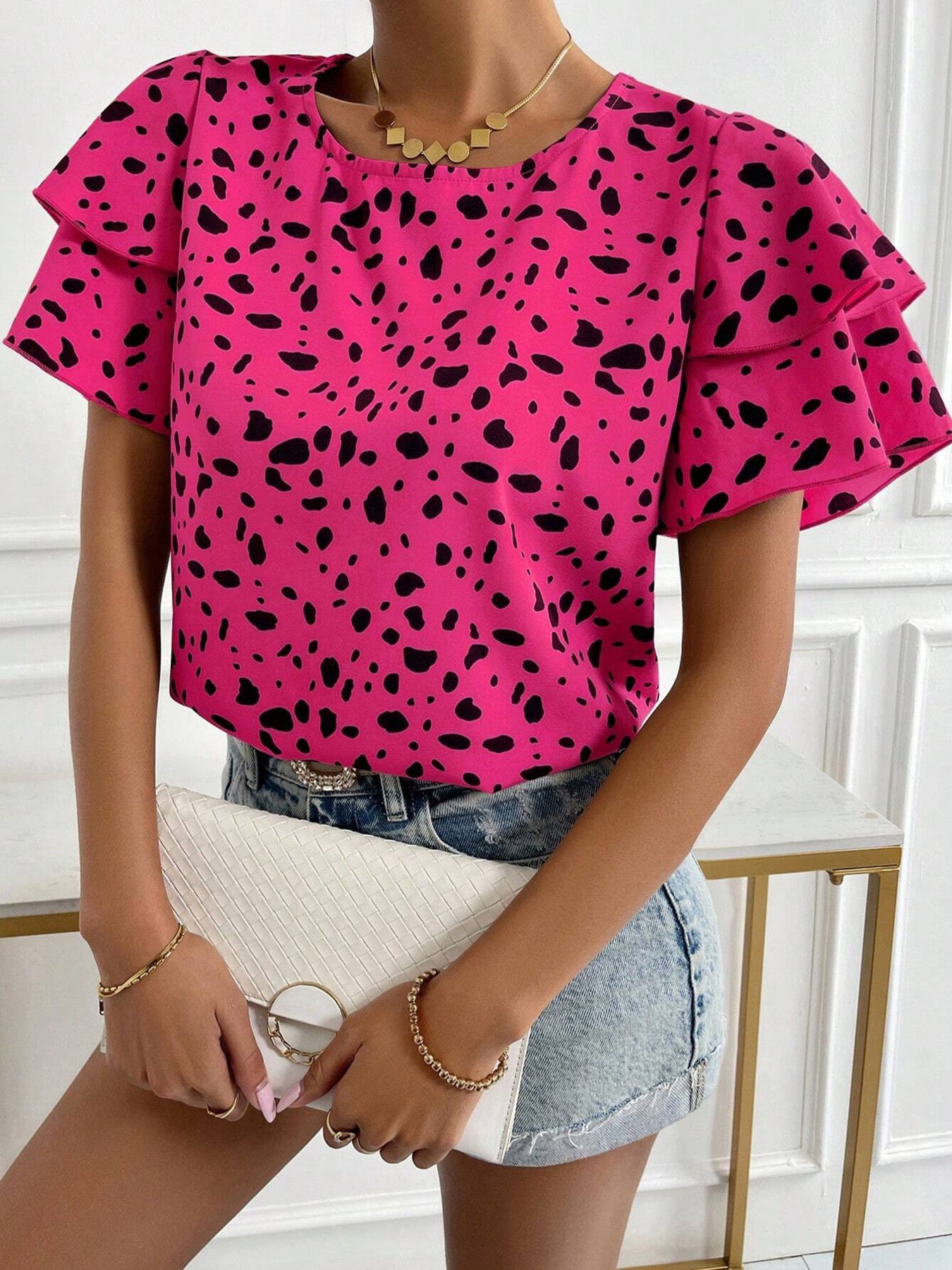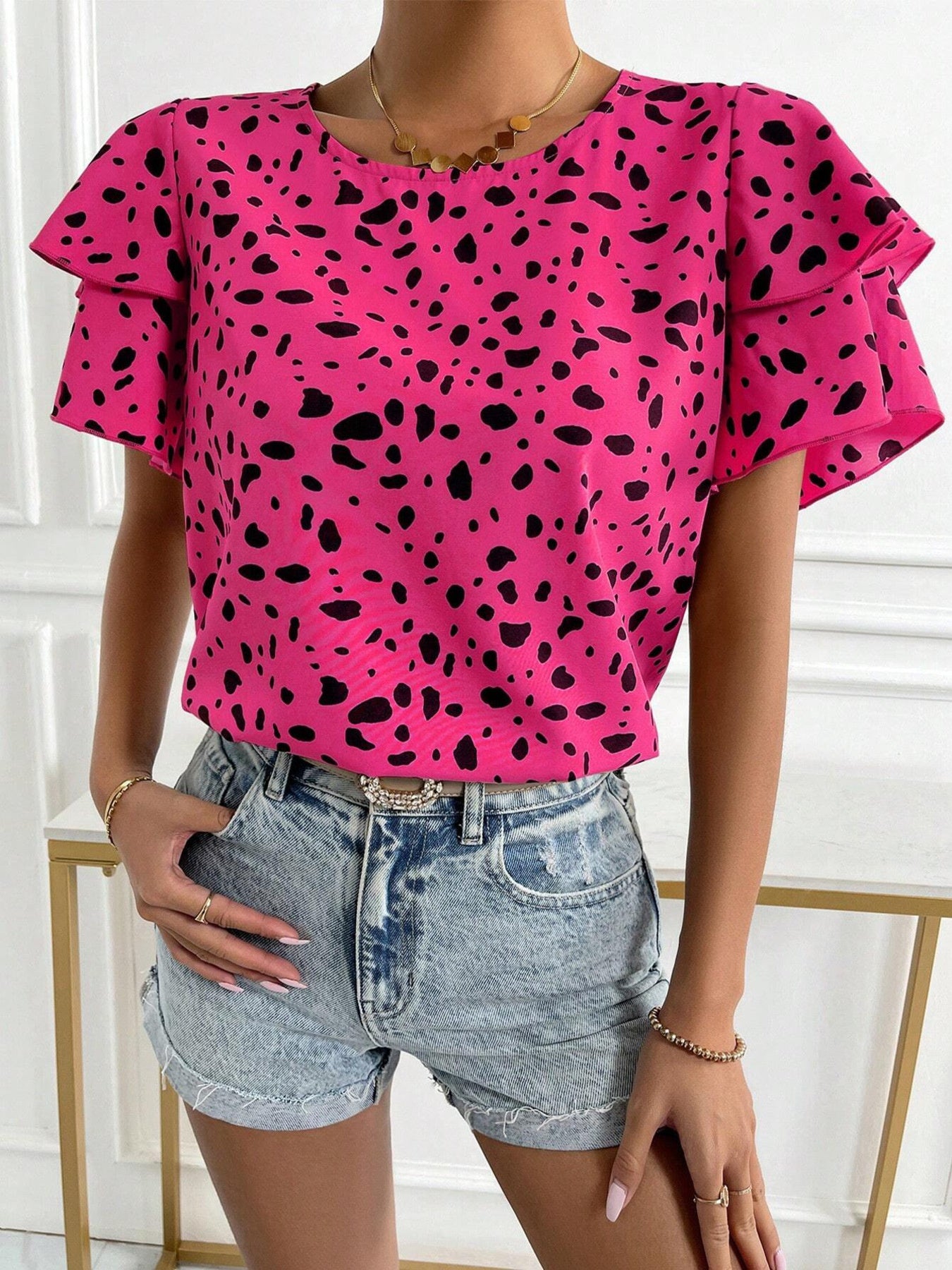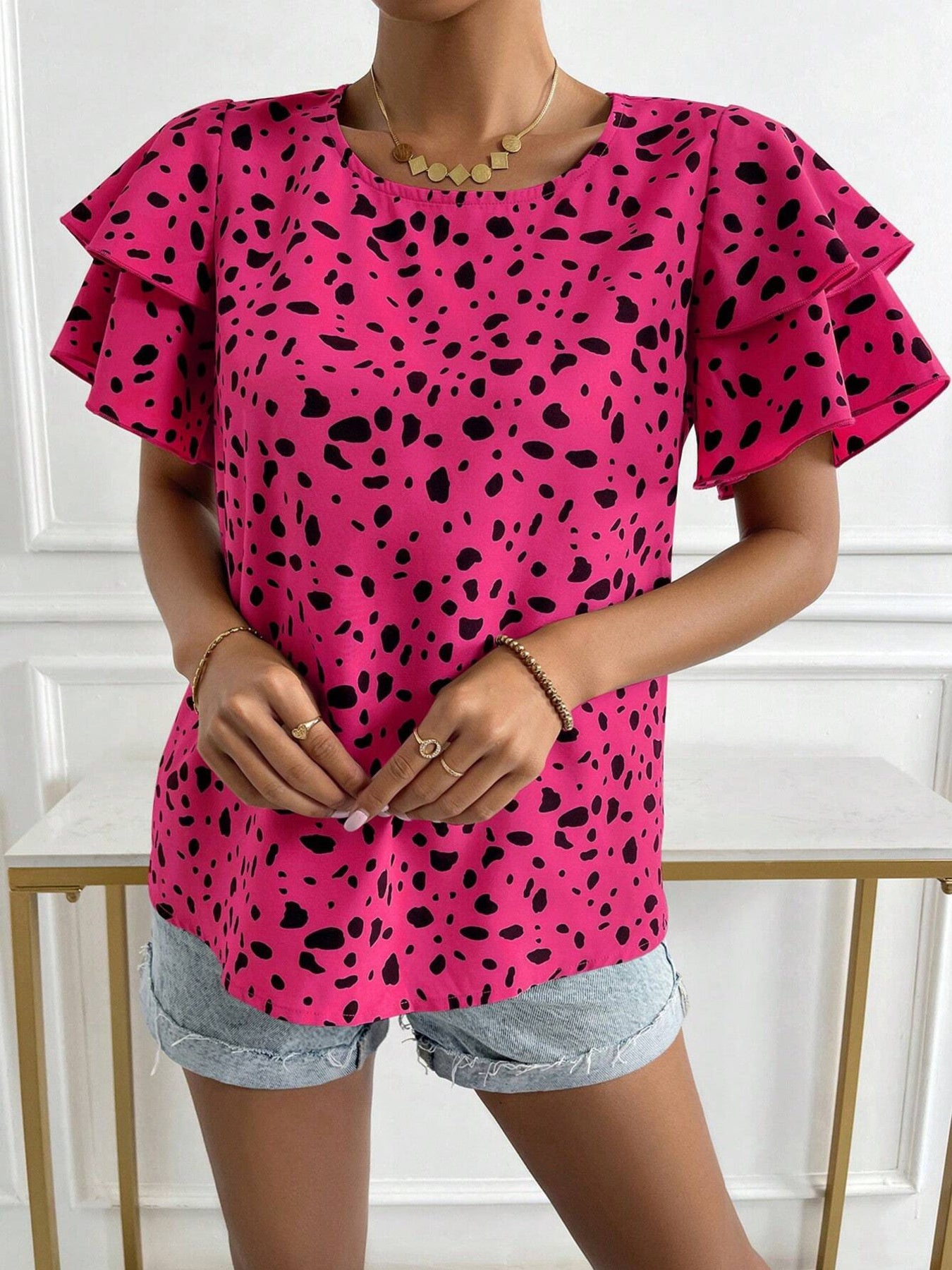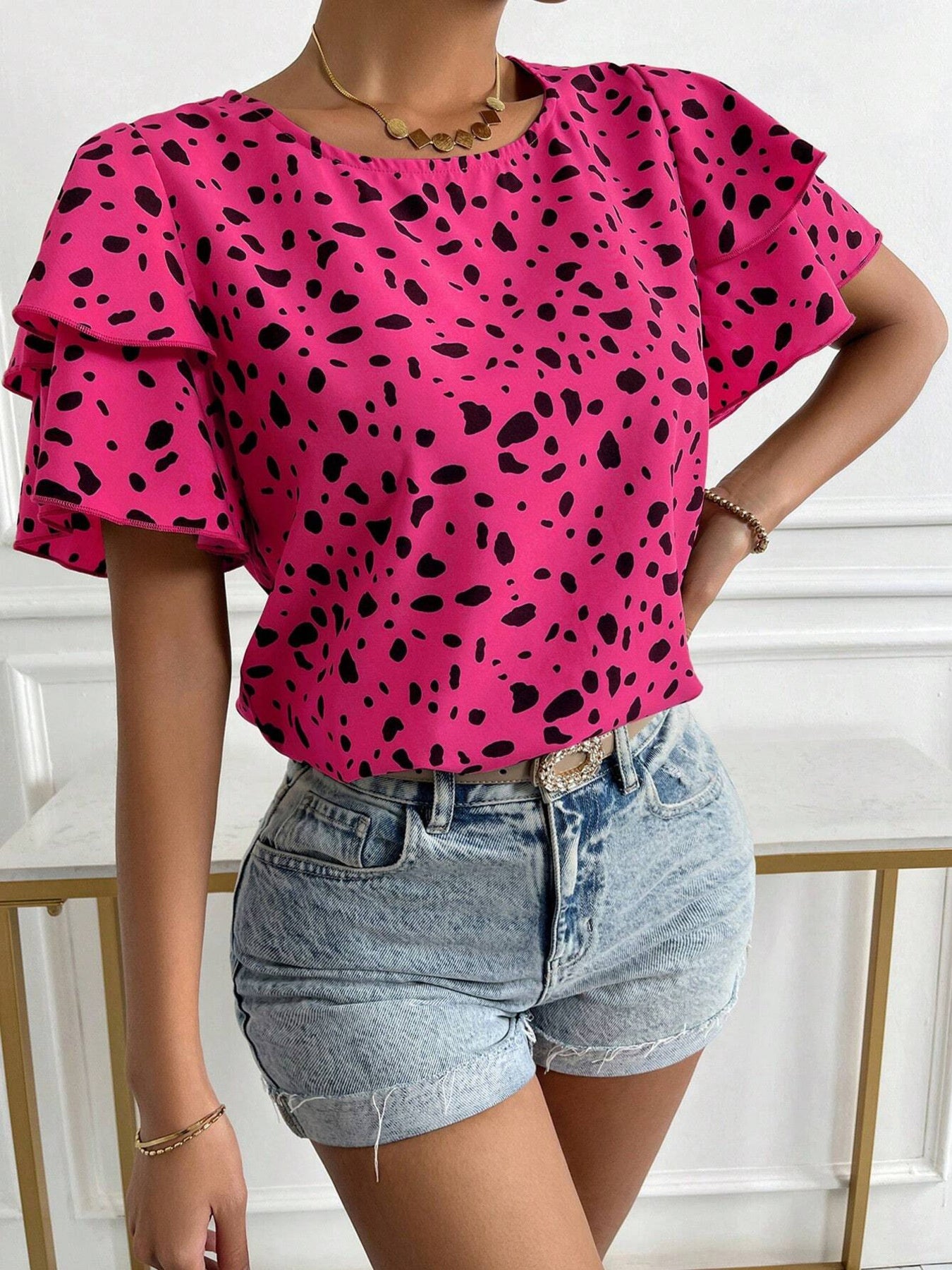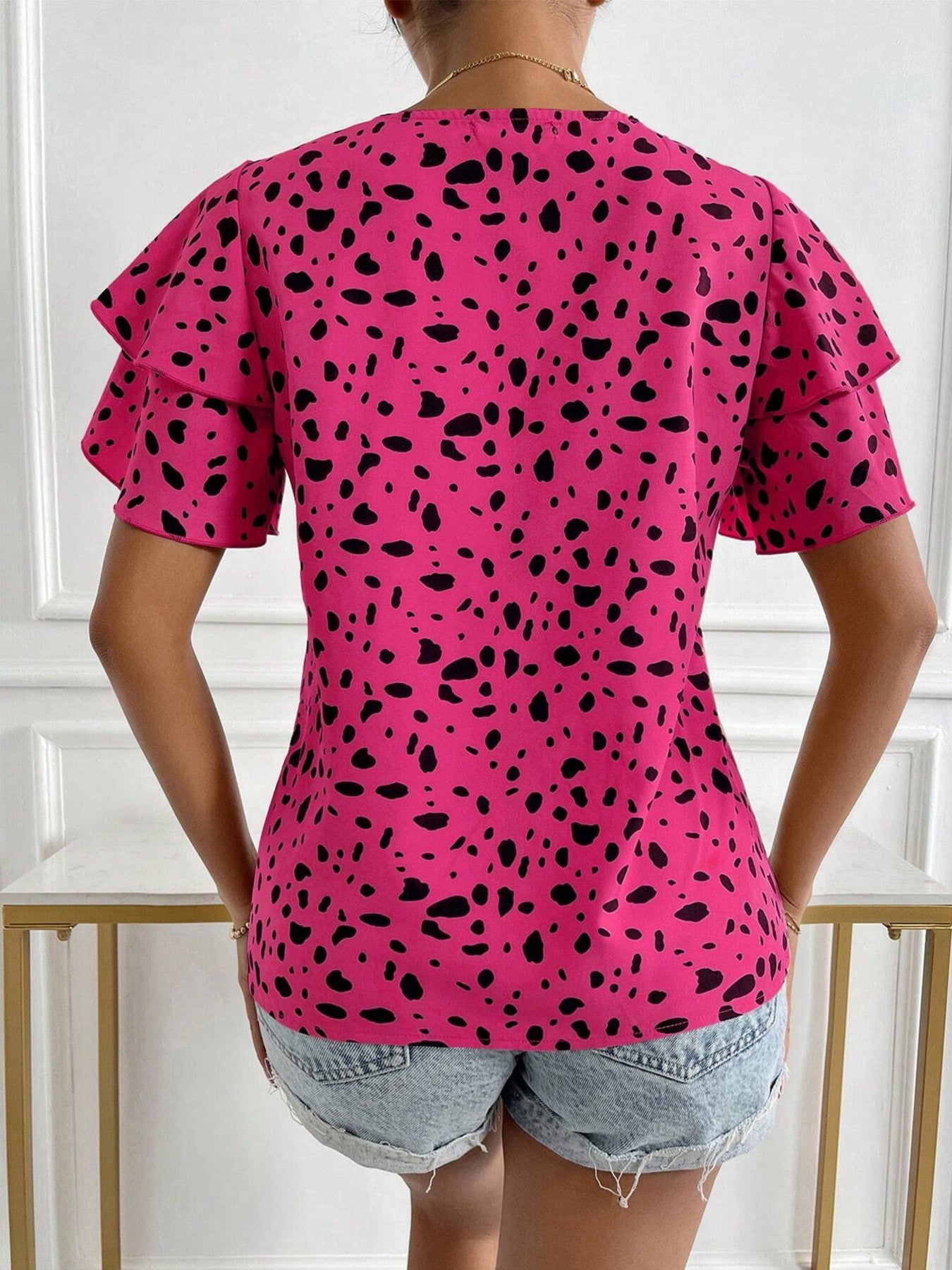 Animal Print Ruffle Sleeve Blouse