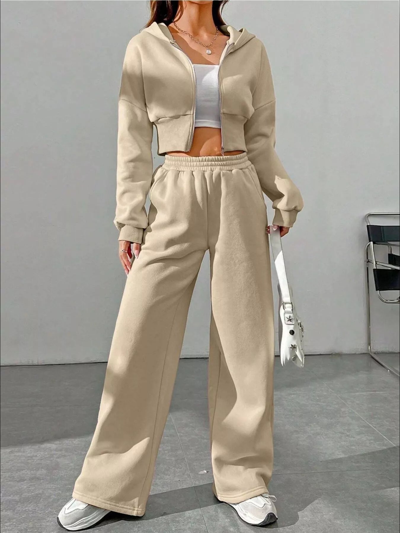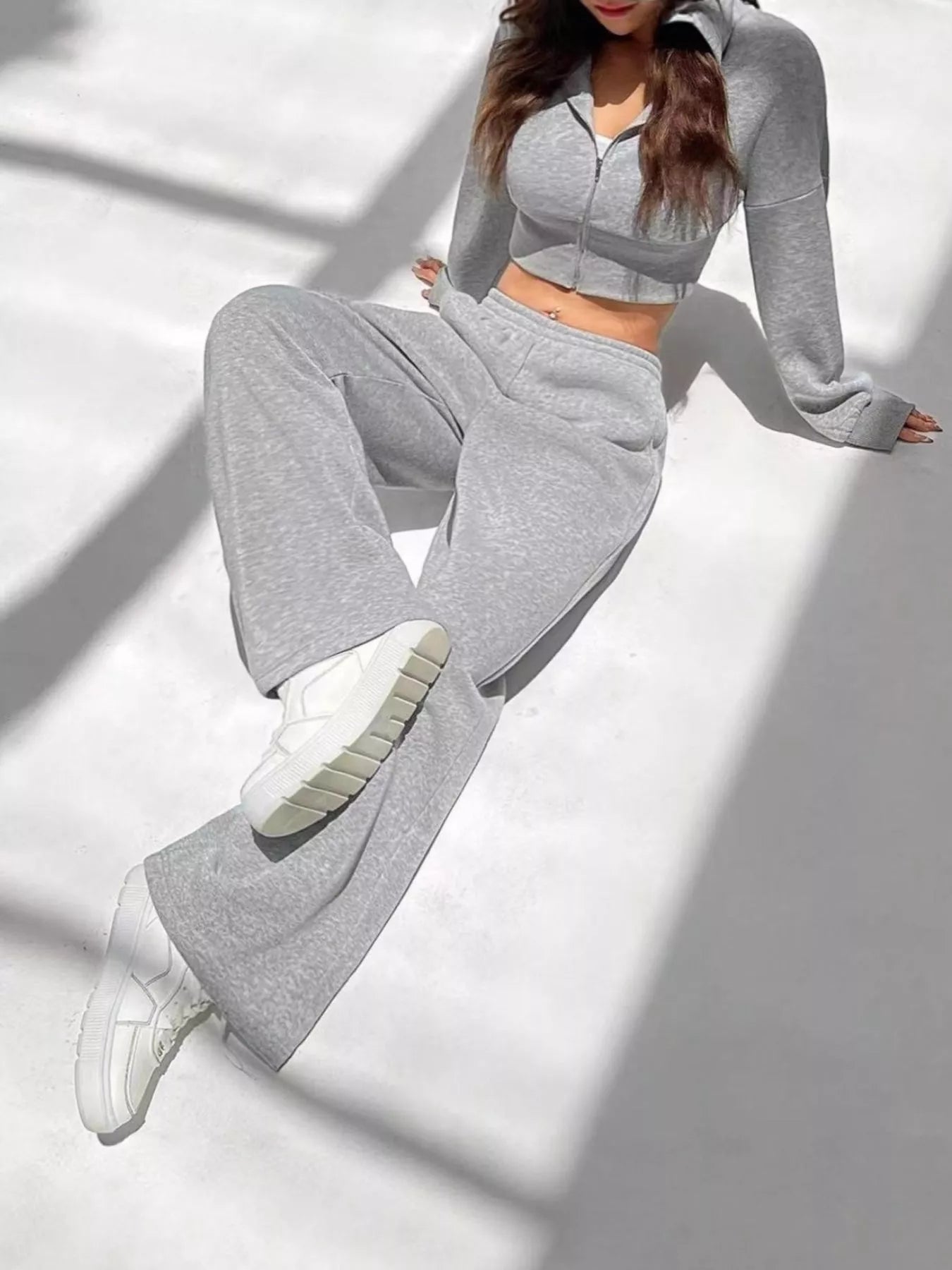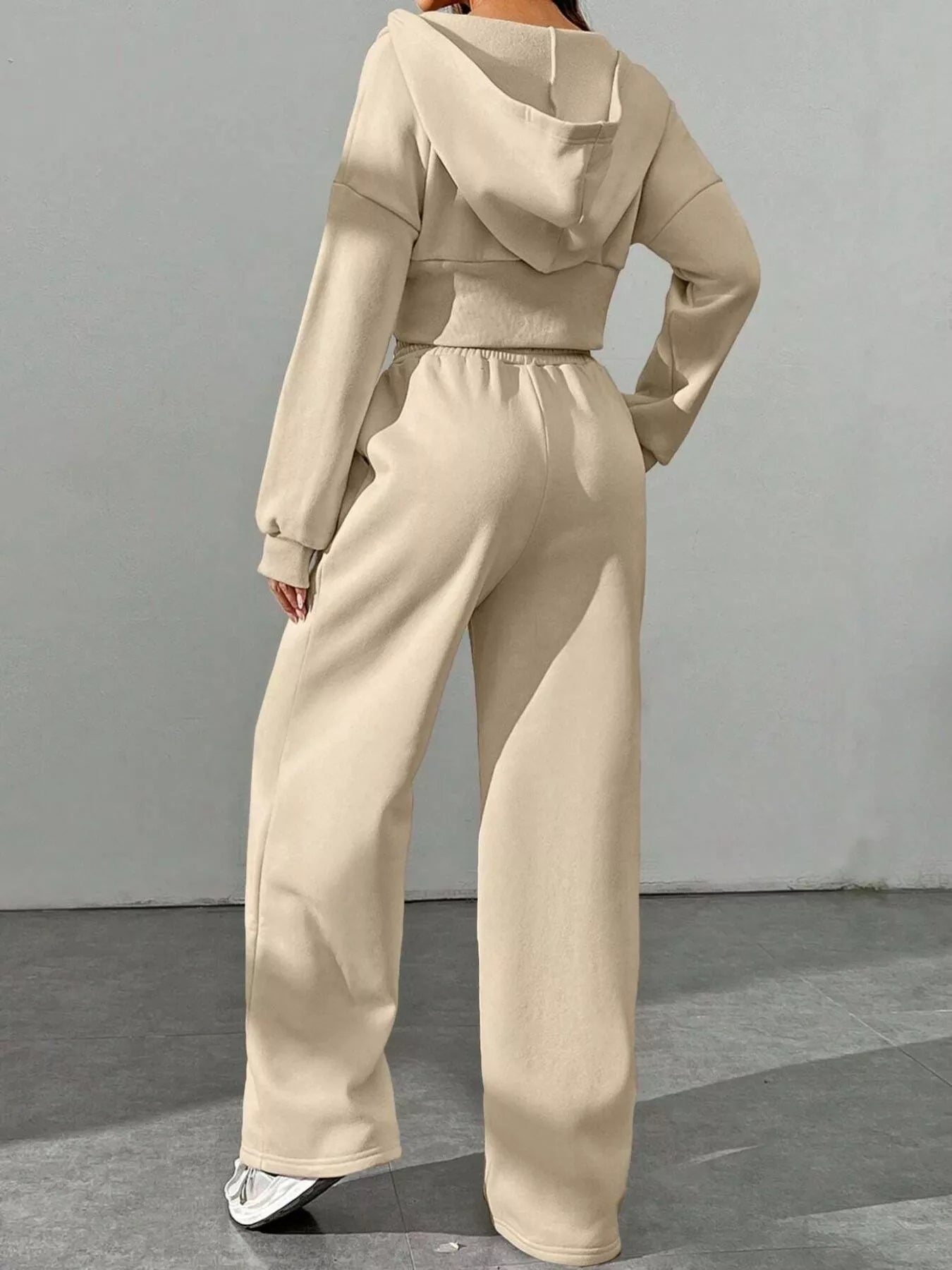 Casual Solid Color Hoodie and Wide Leg Pants Set