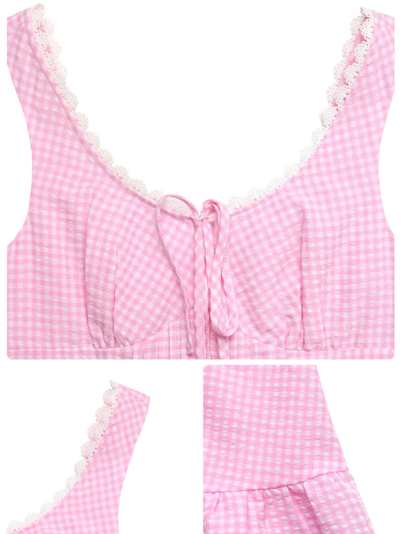 Gingham Lace Trim Mini Dress