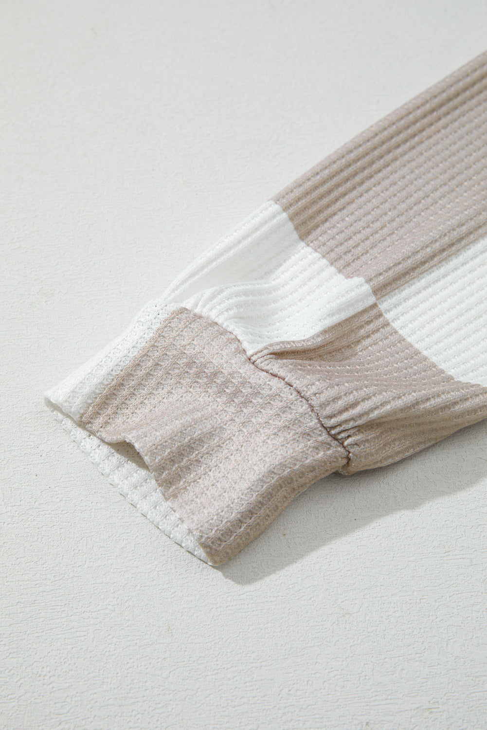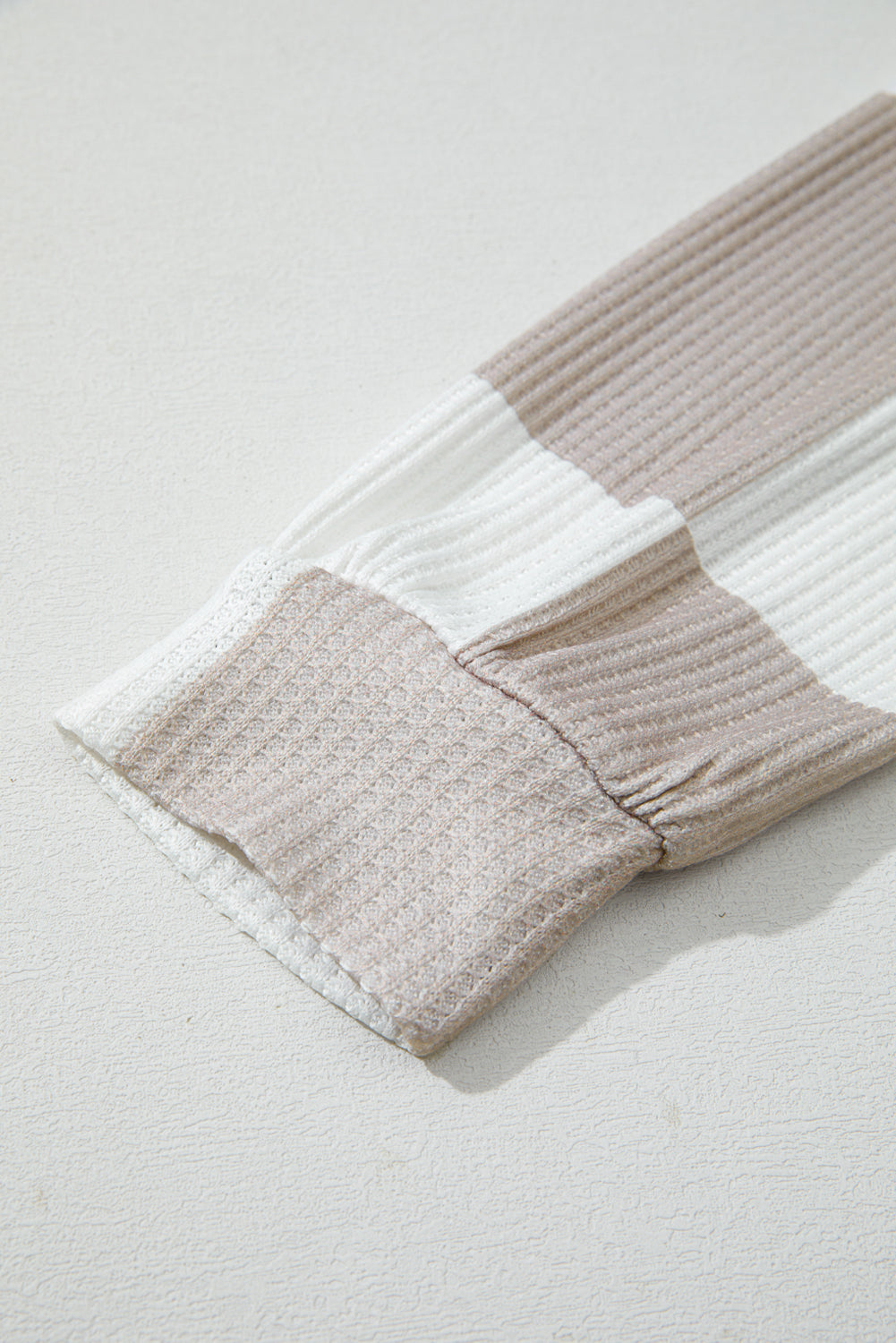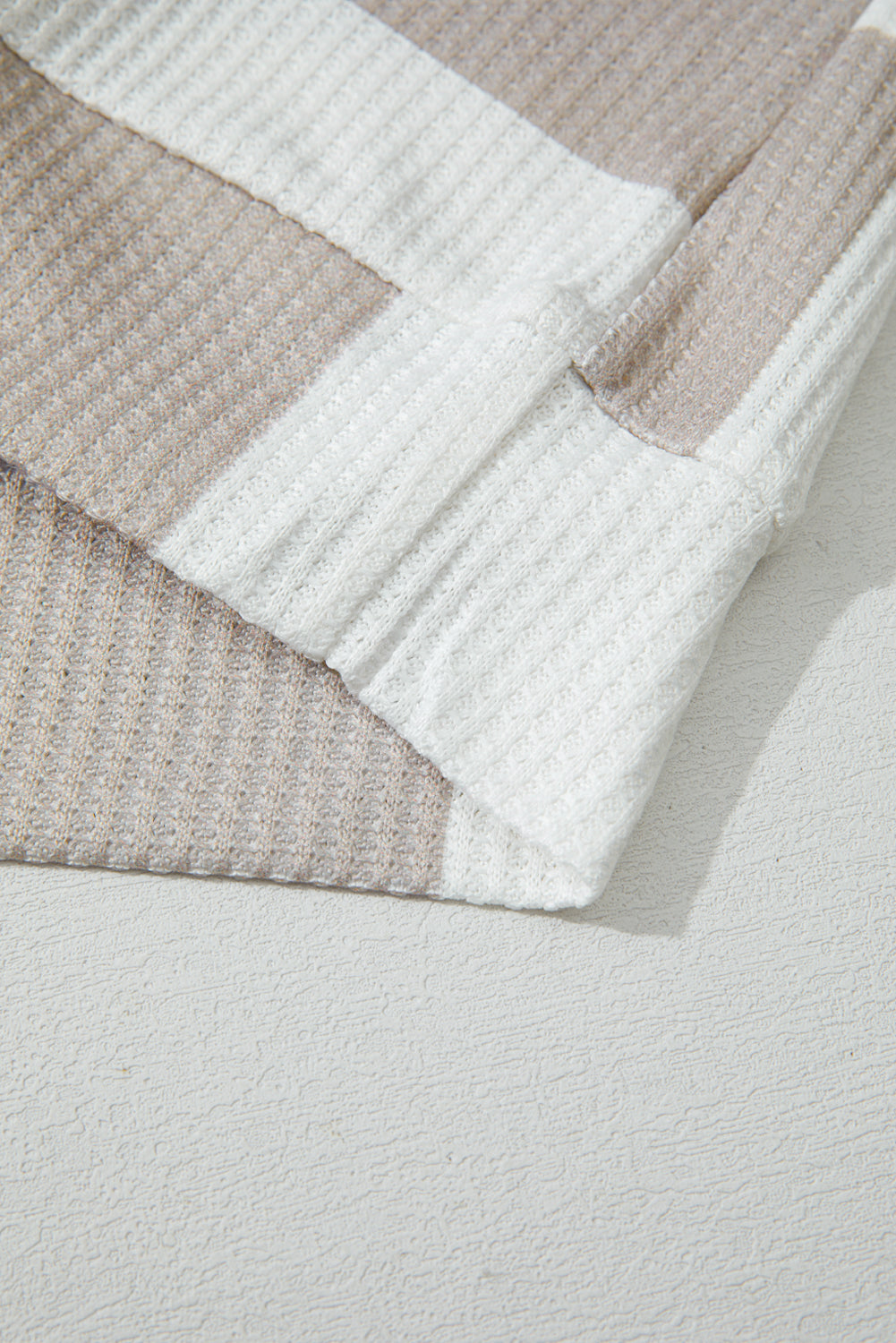 Khaki Checkered Print Breathable Textured Long Sleeve Top