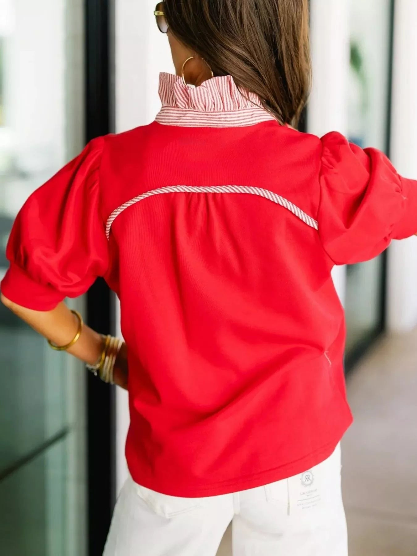 This Notched V-Neck Puff Sleeve Blouse is the perfect mix of simple and stylish, designed to make getting dressed feel effortless while still looking put together.