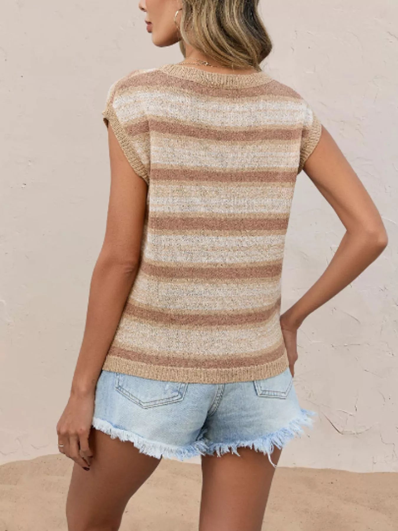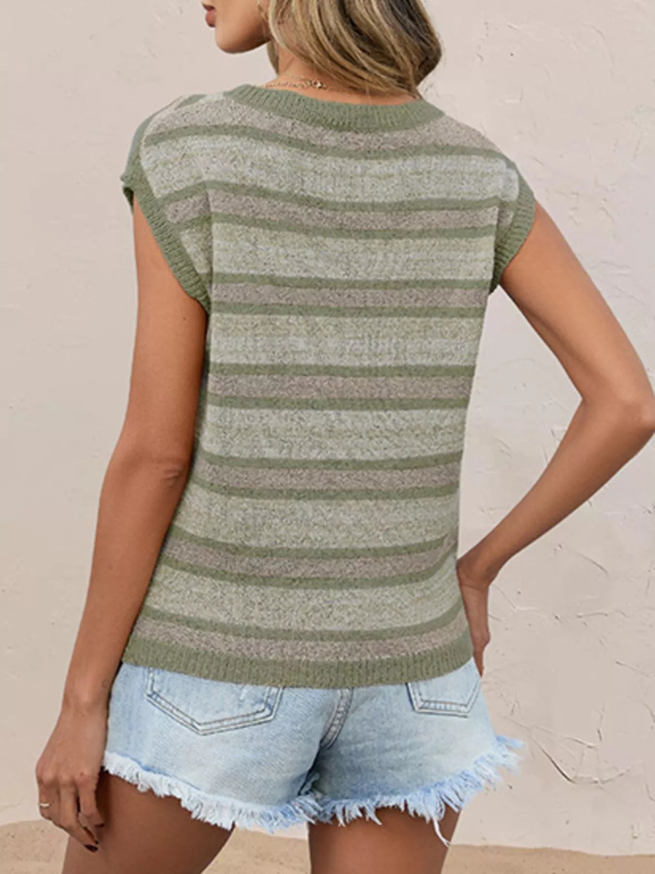 Striped Knit Top | Casual Round Neck Lightweight Sweater Shirt